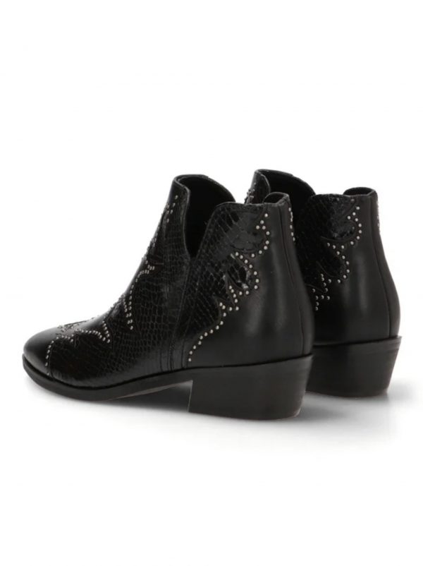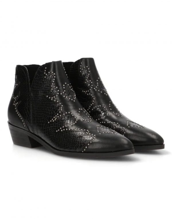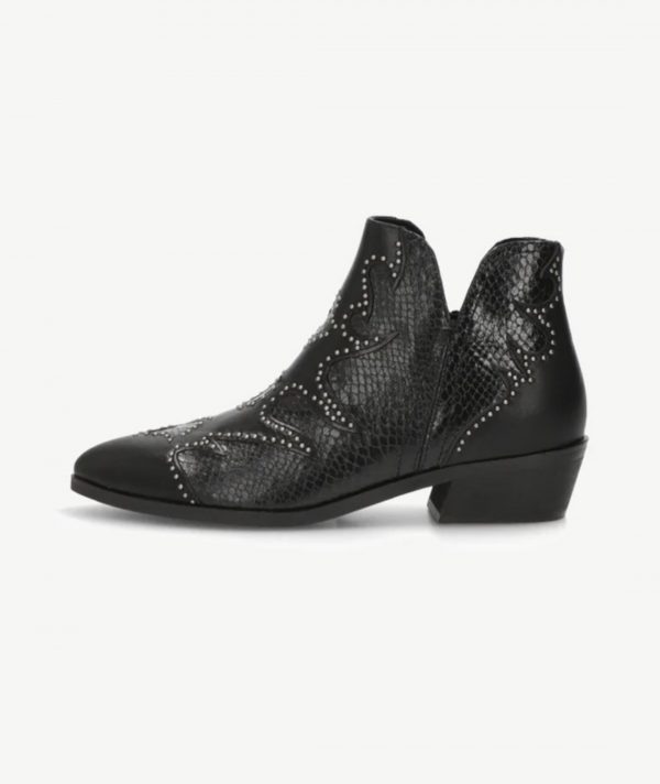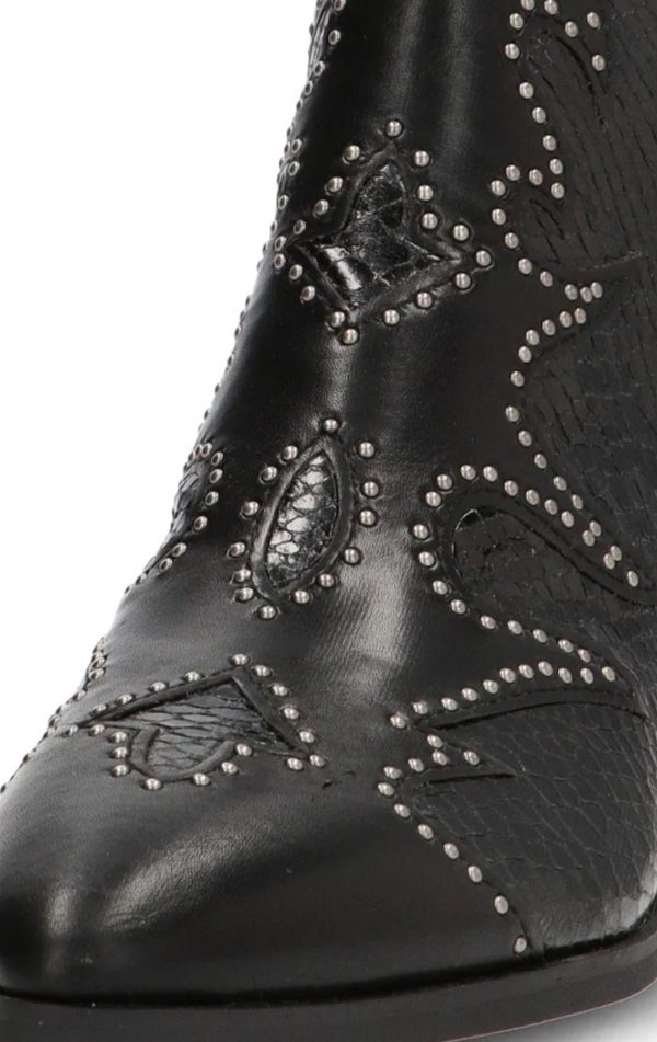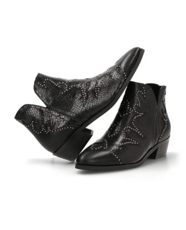 Botín de Corina estilo cowboy de caña baja con abertura lateral y detalles de tachas. Puntera afilada y tacón de 4cm. Siendo tendencia esta temporada, rompe tus looks con estos botines de la marca Corina.