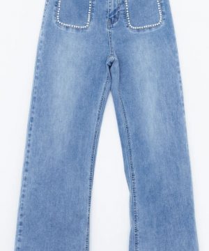 CAMISA BLANCA DENIM CUELLO PERLAS