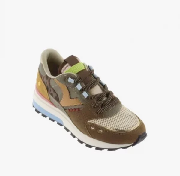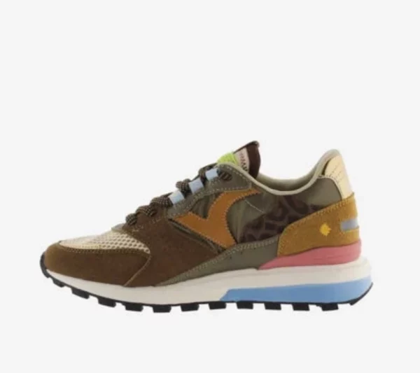 Sneakers para mujer confeccionadas en una combinación de piezas multicolor en nylon, serraje y sintéticos. Cierre mediante cordones gruesos jaspeados al tono. Puntera en malla favoreciendo la transpiración. Suela bicolor y patín con grabados del logo en relieve antideslizante que favorece un mejor agarre. Estabilizador en el talón. Incluyen además una plantilla extraíble ergonómica y muy confortable.