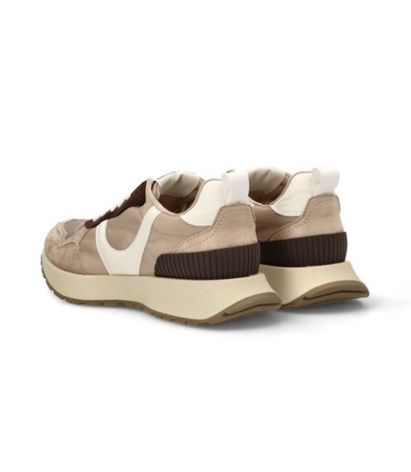 Zapatilla deportiva estilo running. Corte en combinación de materiales y colores. Suela dentada y cierre mediante cordones de seis pasadas. Altura de la suela 3,5cm.