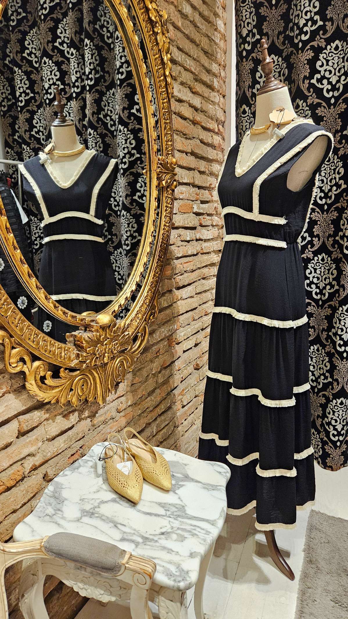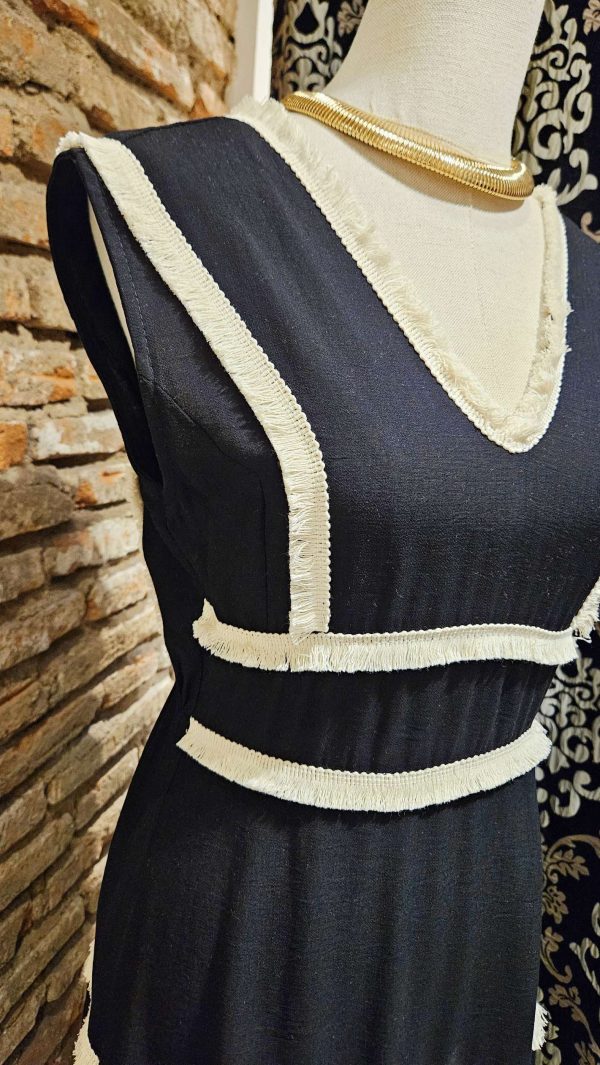 Vestido costuras flecos