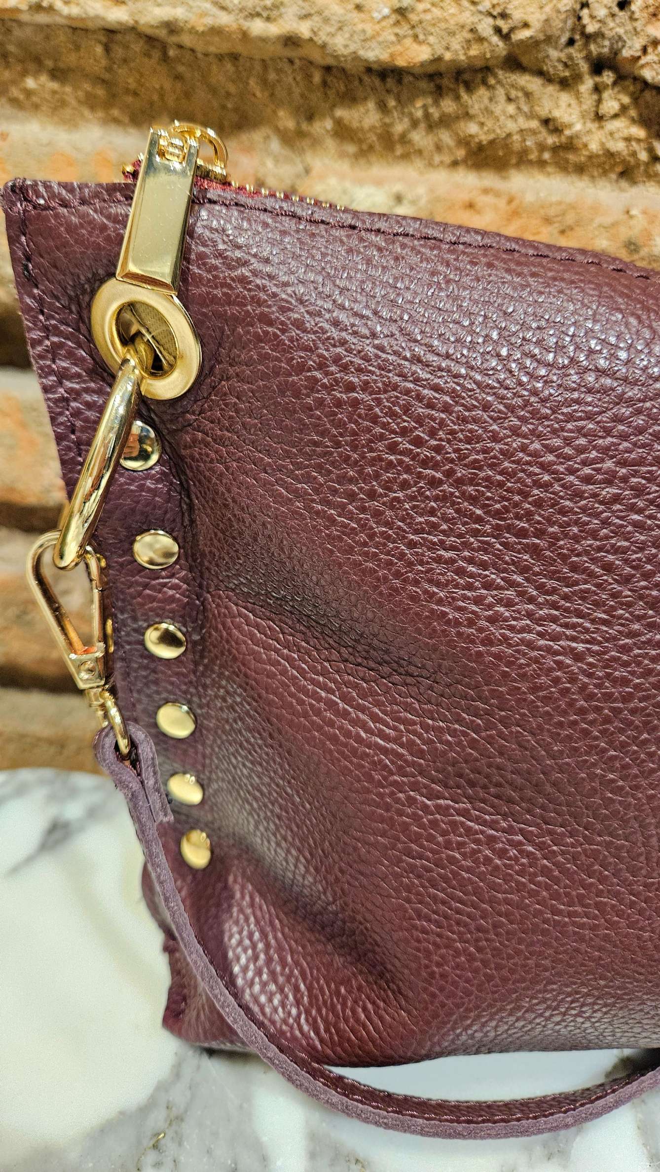 Bolso piel anilla tachuelas