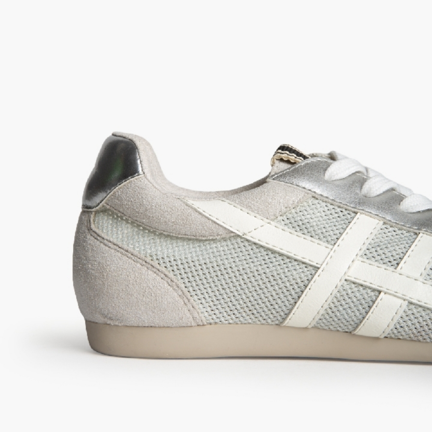 Zapatilla deportiva de Corina, estilo retro en combinación de materiales. Cierre mediante cordones de siete pasadas. Altura de la suela 2,5cm.